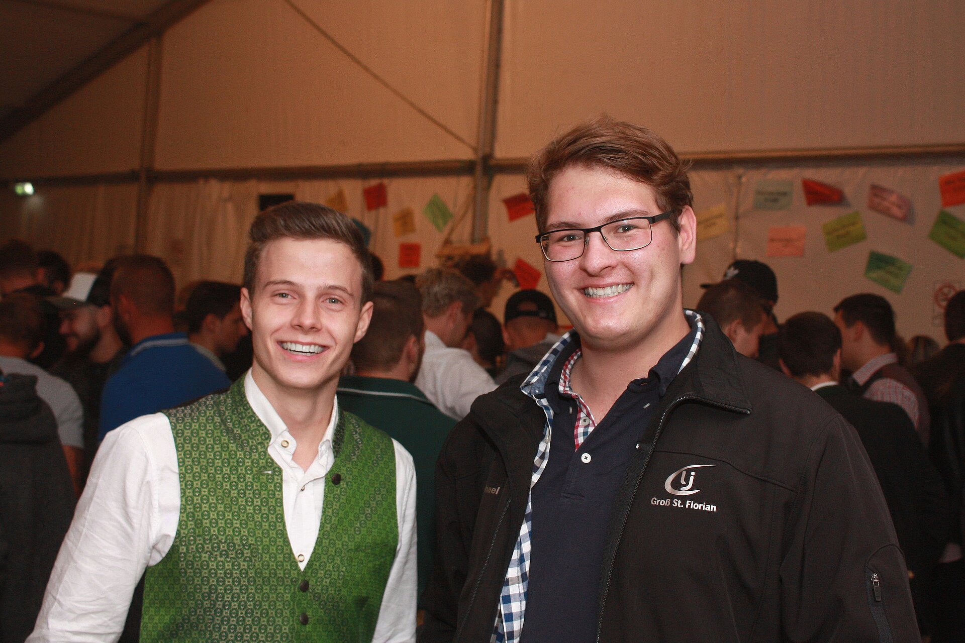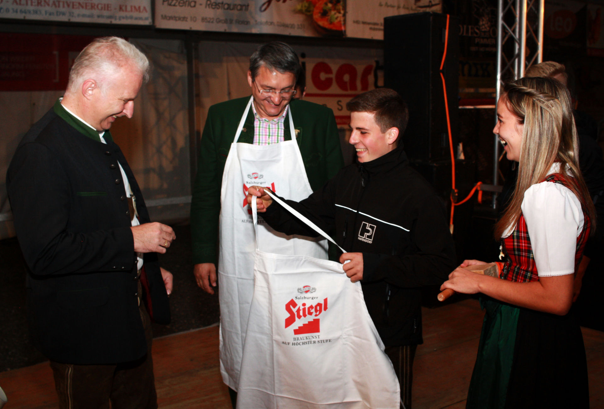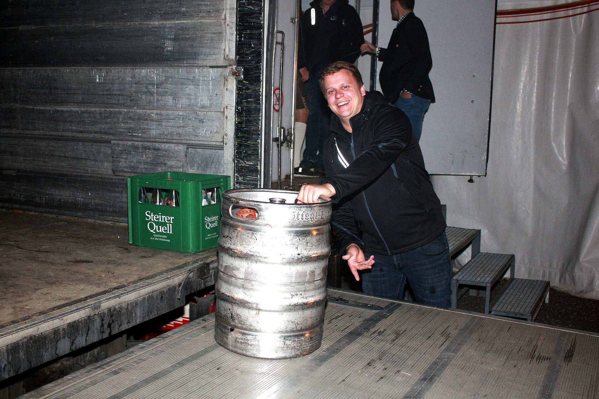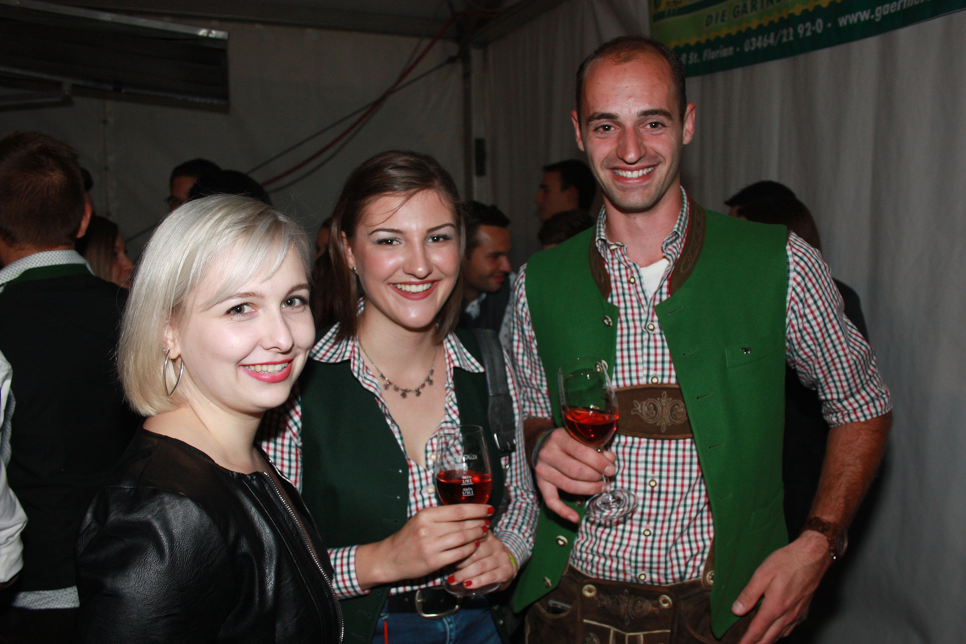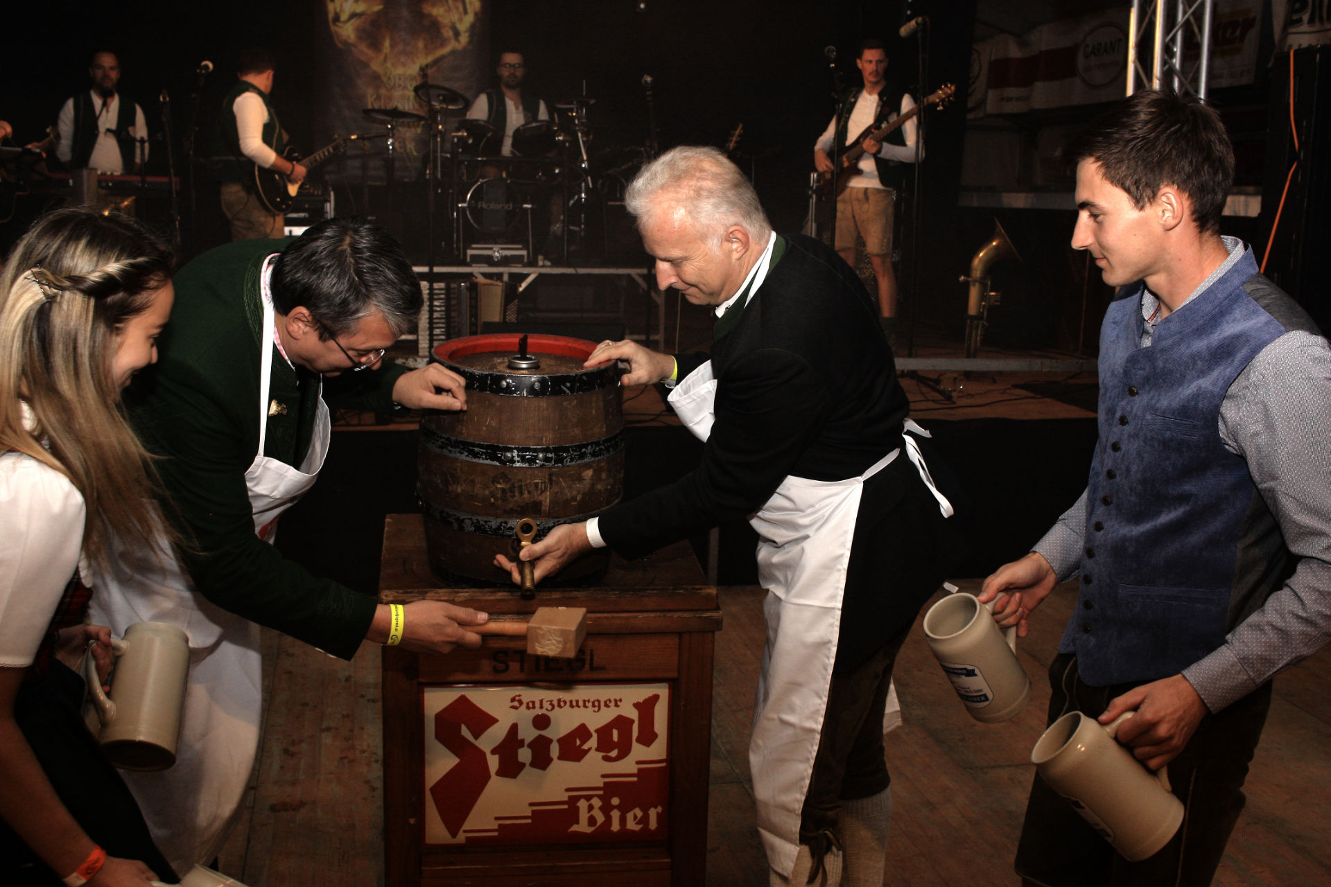 Im Anschluss eröffneten unsere Ehrengäste Bürgermeister Alois Resch und Franz Nebel, Prokurist der Raiffeisenbank Groß St. Florian – Wettmannstätten, mit Hammer und Zapfhahn offiziell unser Oktoberfest! Die Band setzte ihr musikalisches Programm fort und unterhielt die Feiernden und Helfer bis in den frühen Sonntag hinein.
