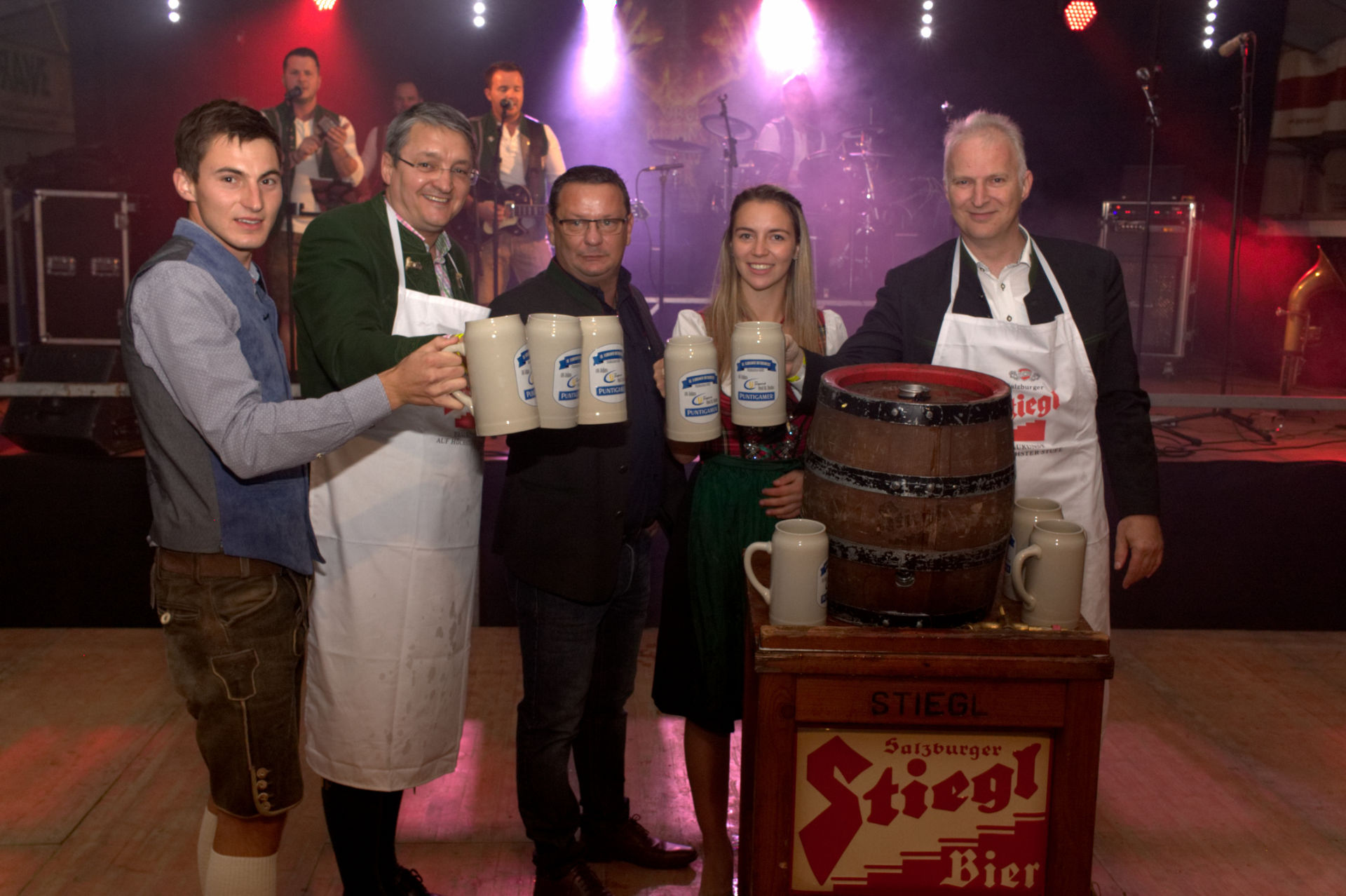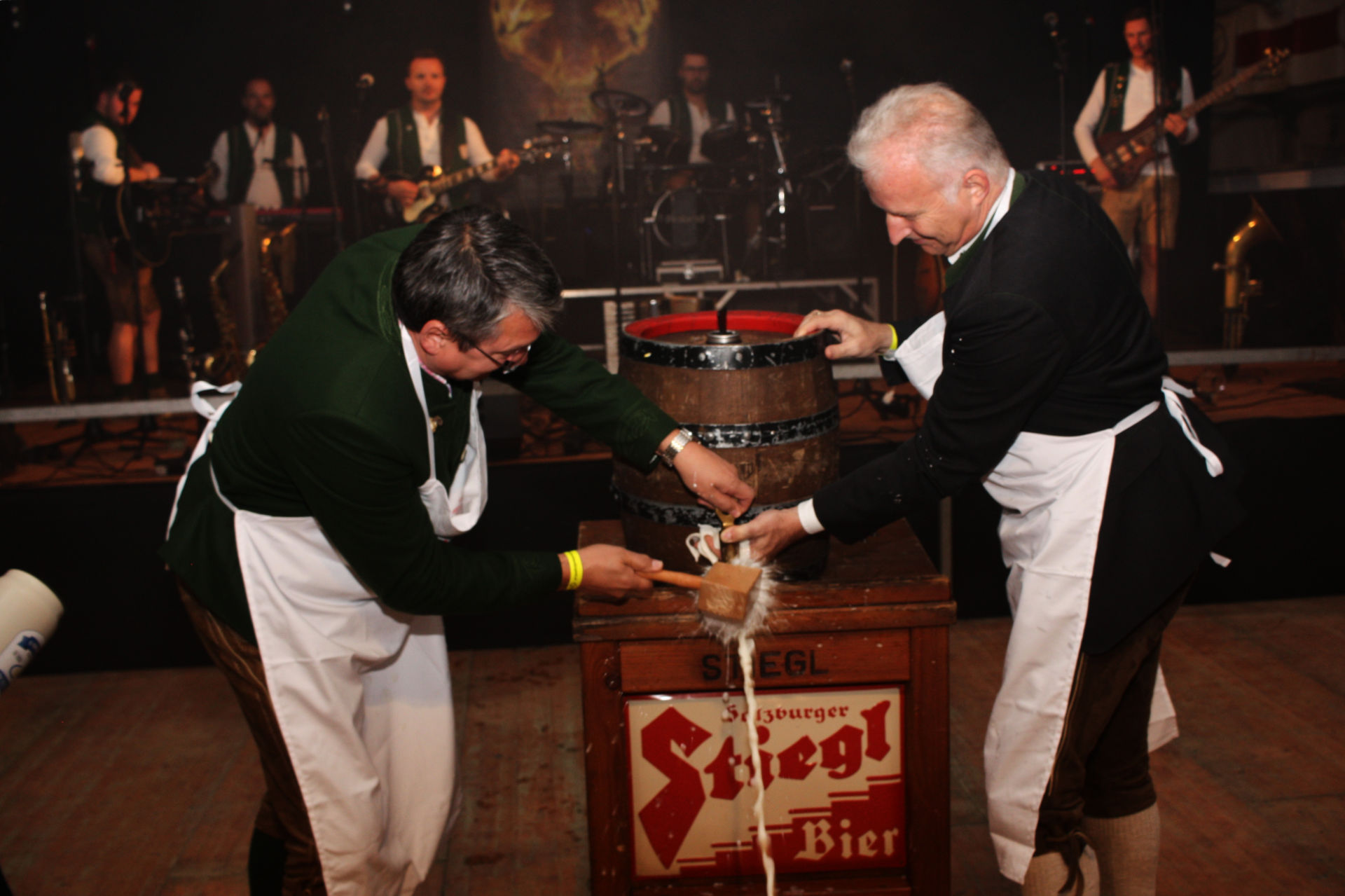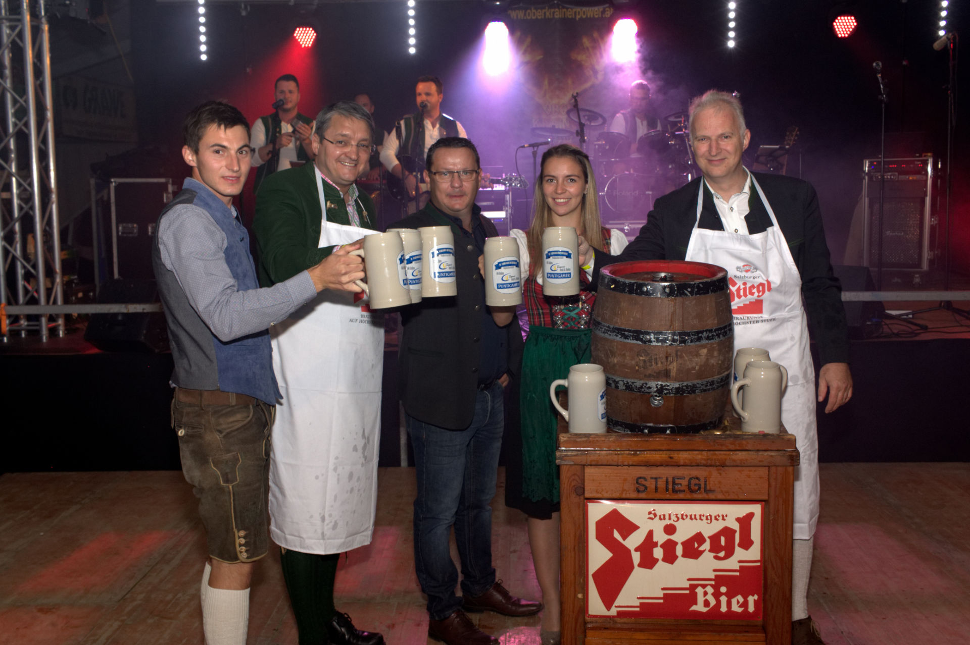 Kurz nach Beginn des Einlasses war es dann soweit, das Zelt füllte sich stetig und Oberkrainer Power betraten die Bühne und stimmten alle auf den kommenden Höhepunkt des Festes ein, den Bieranstich. Unsere Leiterin Kerstin Wegl und unseren Obmann Franz-Josef Wallner begannen mit der Begrüßung der Feiernden.