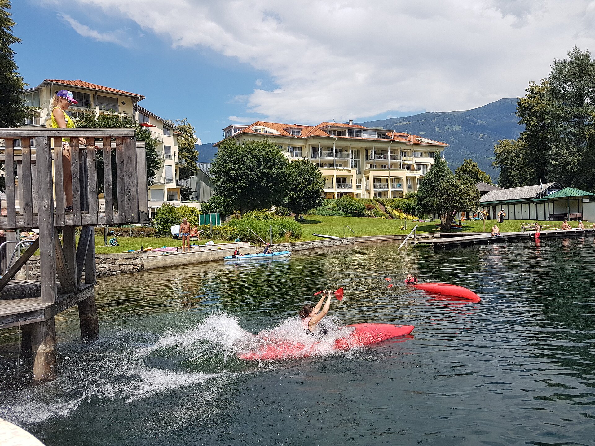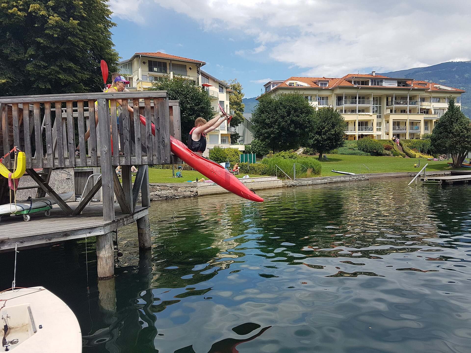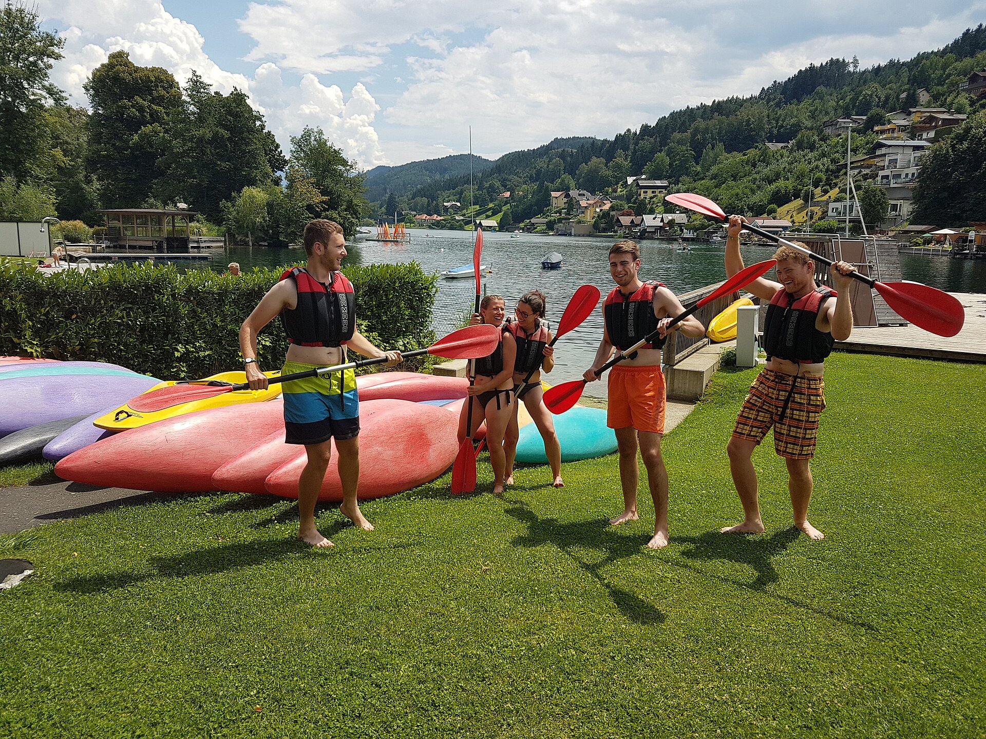 Jedes Jahr, wenn die Tage länger und die Nächte kürzer werden und die Sonne am Himmel regiert, machen wir uns auf dem Weg zum Sommerausflug. Heuer verbrachten wir das Wochenende vom 13. bis 15. Juli am Millstättersee in Kärnten. Zwischen den Sportarten Kajak fahren, Surfen und Segeln konnten die Mitglieder variieren.