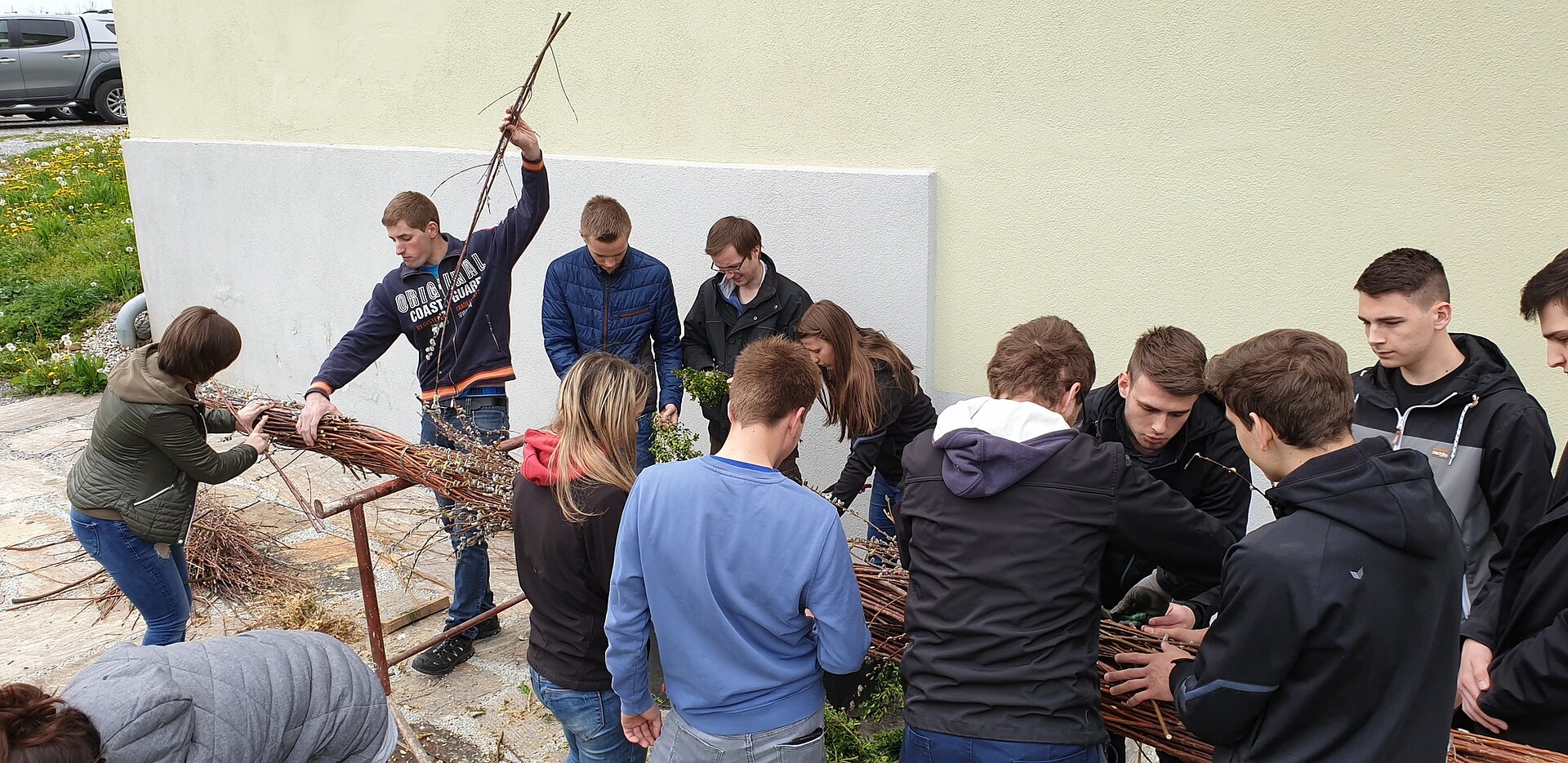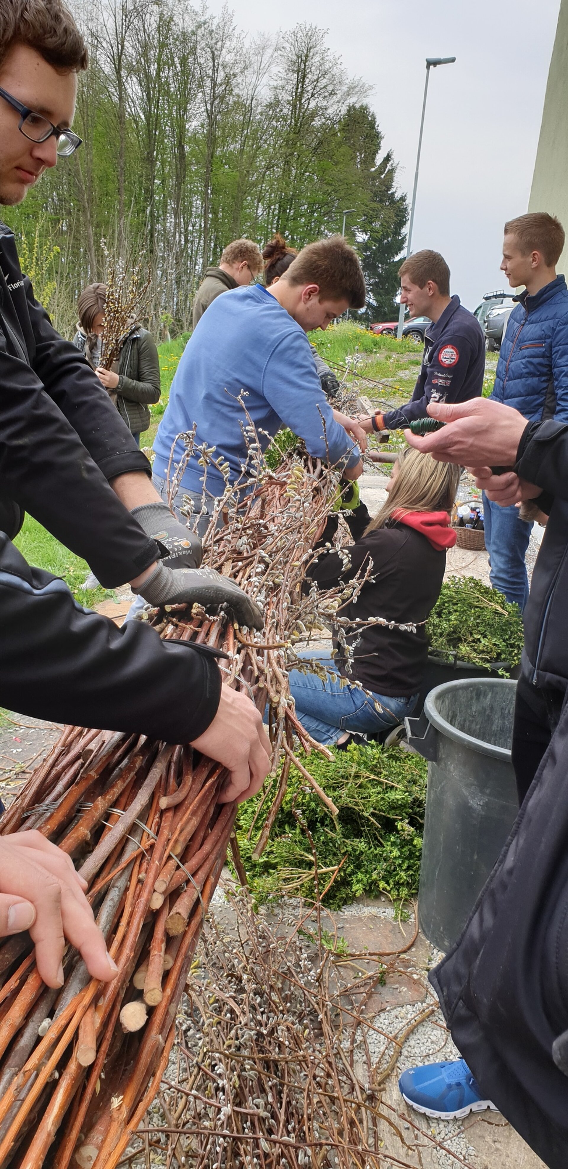 Viele helfende Hände stehen dahinter, organisieren, planen und führen die Vorbereitungen durch. Auch wenn es nur um Brauchtumspflege in der Pfarrgemeinde geht, ohne Durchblick und Plan würde es unser Palmbuschen nie rechtzeitig bis zur Segnung schaffen, danke an alle dafür.