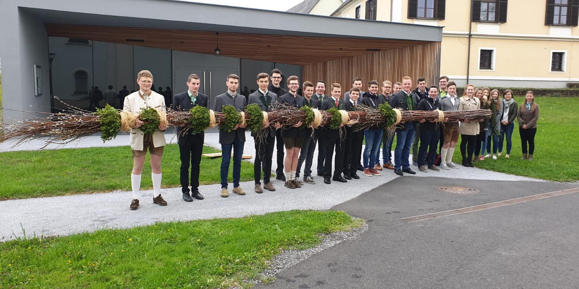 Unser 14-Meter langer Palmbuschen hat uns vergangenes Wochenende wieder auf Trapp gehalten. Heuer erwies sie die Suche nach Palmzweigen und Buchsbaum recht schwierig, da vieles schon wieder abgeblüht war. Nach ausführlicher Suche und zusammen gesammelten Material konnten wir unseren Palmbuschen am Tag der Segnung wieder der Bevölkerung präsentieren.