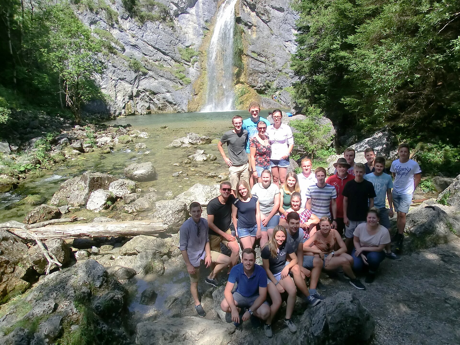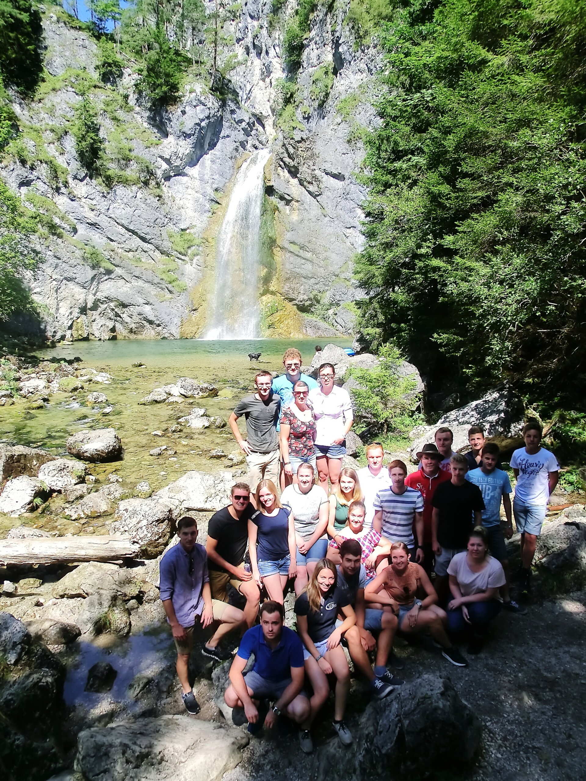 Der Sommerausflug führte uns in die Bergregion um Werfenweng. Am Tag der Anreise besuchten wir die Eisriesenwelt in Werfen, wo wir die Skulpturen, die das Eis in dem weitläufigen Höhlensystem hinterlassen hatte, besichtigten. Nach dem Mittagessen bezogen wir unser Quartier und verbrachten zusammen einen geselligen Spieleabend. Am nächsten Tag brachen wir bereits früh zum Wandern auf. Die Sportlichsten bezwangen sogar die Bischlinghöhe, bevor wir nach einem Zwischenstopp im Ort Werfenweng den Tag mit einem Grillabend ausklingen ließen. Der vorletzte Tag des Ausflugs stand allen zur freien Verfügung. So nutzten einige mutige die Gelegenheit zu einem Paragleiter-Tandemflug, während andere sich am örtlichen Badesee entspannten und Volleyball spielten. Bevor wir in Richtung Steiermark aufbrachen, besuchten wir den Hangar 7 in Salzburg. Wieder in der Steiermark angekommen machten wir Halt in Schlamding und besichtigten den Salza-Wasserfall. In den späten Abendstunden trafen wir in Gr. St. Florian ein und konnten auf ein großartiges verlängertes Wochenende zurück blicken.